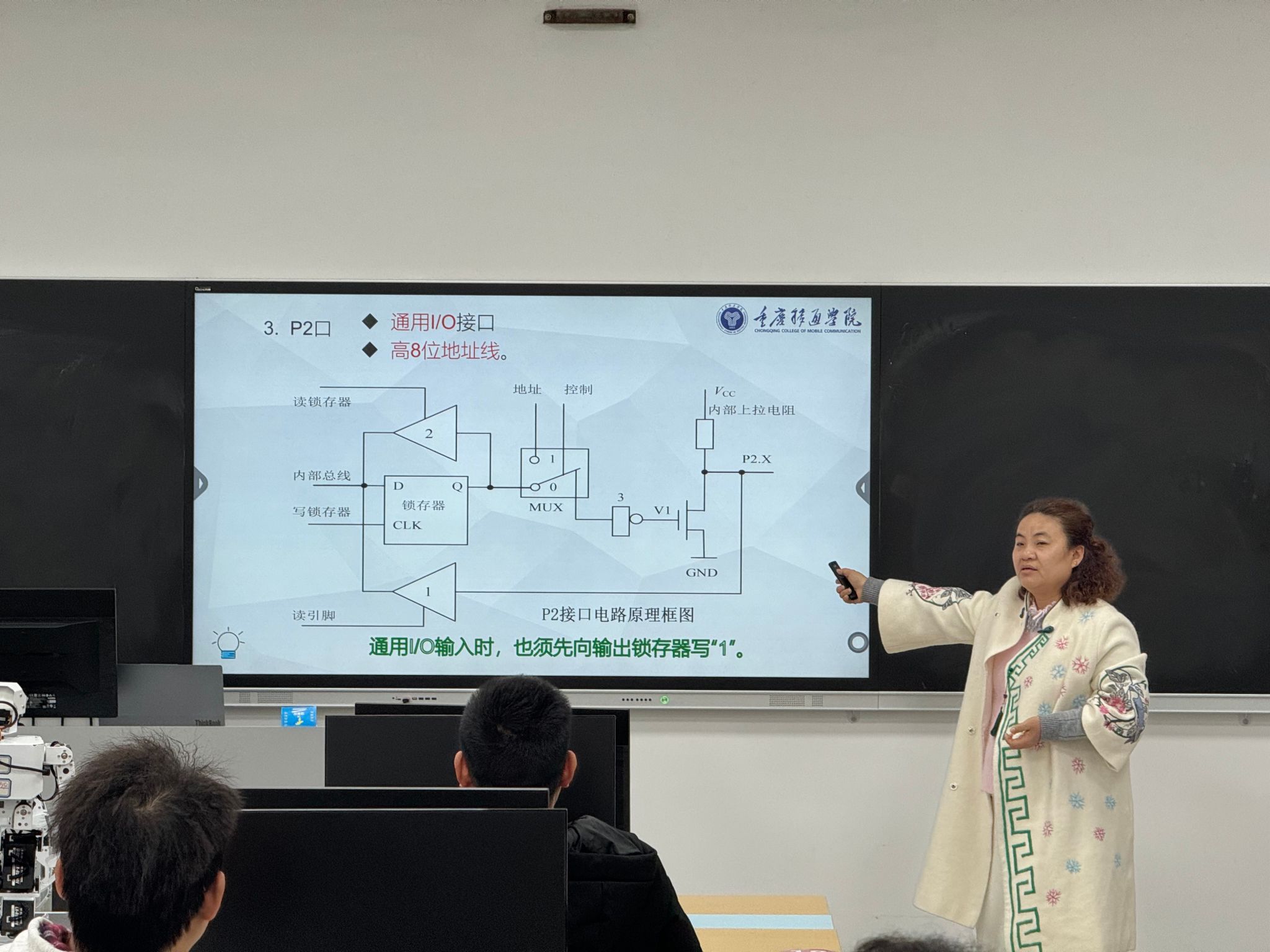 3月19日,在《单片机原理与应用》课程中,陈俊霖老师围绕"中断机制"教学难点展开深度教学,通过"理论解析-实验验证"的双轨模式,重点攻克学生普遍存在的中断优先级逻辑理解困境。她运用STM32开发板进行现场代码调试,直观演示高优先级中断如何抢占低优先级中断的执行过程,并借助Keil MDK开发工具的实时调试功能,动态追踪中断服务程序的跳转轨迹与返回机制,实现中断嵌套逻辑的可视化呈现。叶敏老师聚焦51单片机通用I/O端口(P1-P3)的硬件设计,系统解析端口驱动电路的设计原理、电气特性参数匹配等核心技术,帮助学生构建硬件接口设计的底层逻辑思维,形成软硬件协同设计的完整知识体系。
