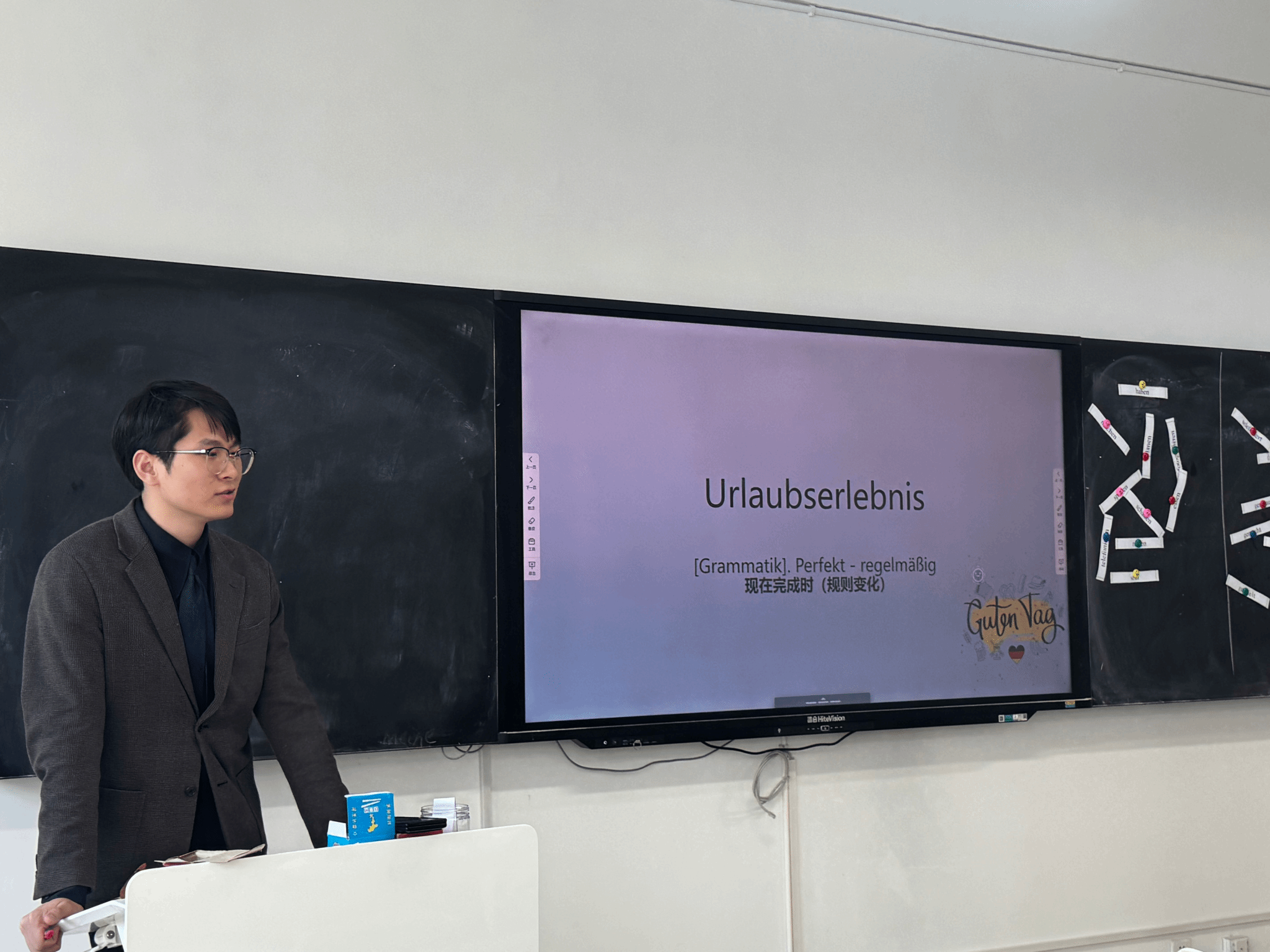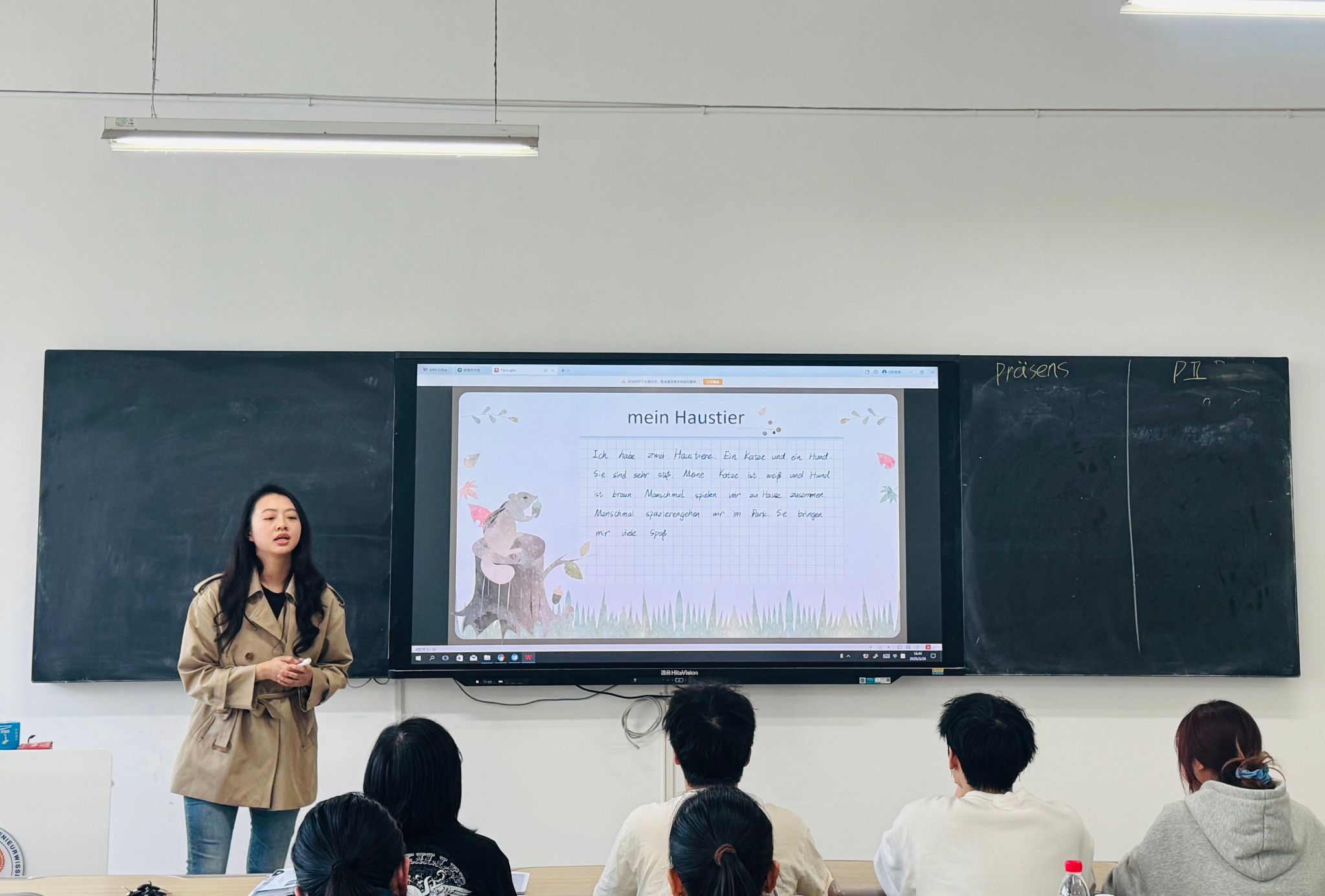 邱晨老师本次授课以“动物”为主题,通过“词汇建构-文本解析-写作输出”三位一体的教学设计,成功引导学生完成A2水平德语宠物描写作文,充分展现了任务驱动法与分层教学理念的有机融合。