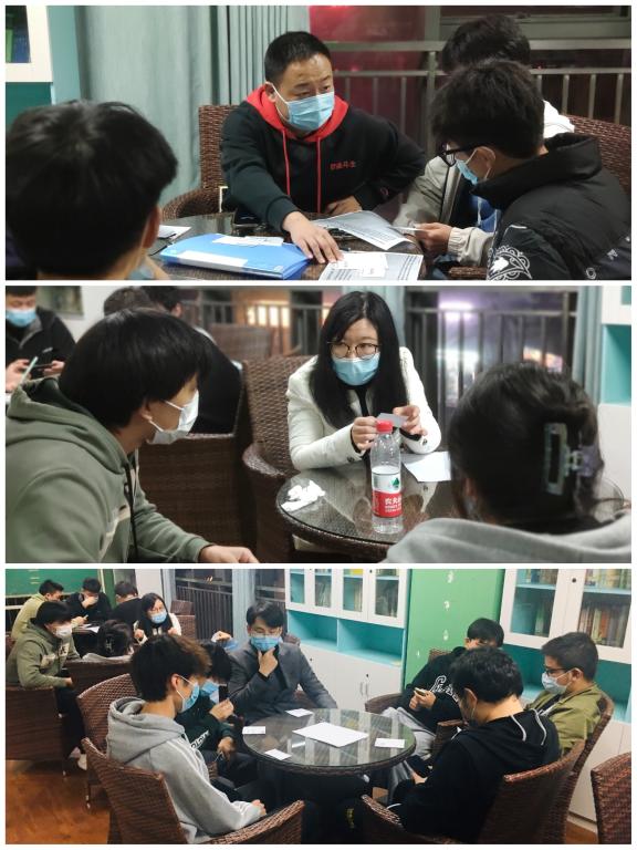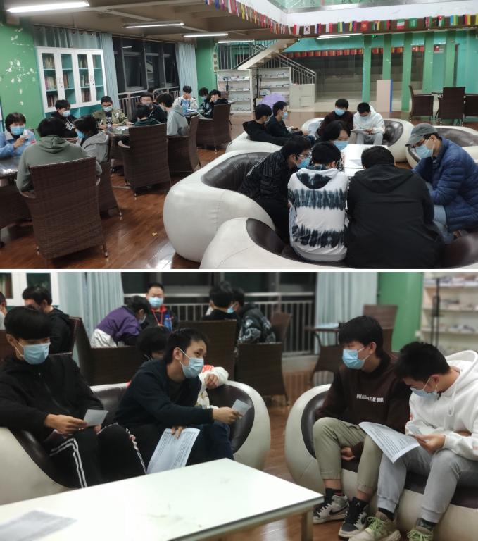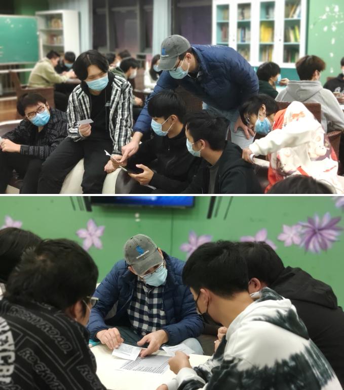 晚7点,同学们来到中德书屋。外教Elias,德语教师吕巍、周密和李晓锋则热情地与同学们用德语打招呼。寒暄过后,教师们将学生分为A1、A2两个大组,其中A1部分又分为三个小组,以分等级、小团队的形式精准训练同学们的口语能力与应试技巧。