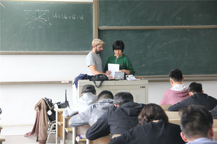 在课堂上,pablo老师将专业测量技术的理论和实践结合在一起,并在屏幕上展示出一道道公式衍生出来专业测量的技术方法。并运用实践的方法,将笔从空中抛下,这样不仅能让同学们生动形象的记住实践过程,开动大家的思维能力,还能让课堂变得生动有趣。同学们目不转睛的看着屏幕的公式,pablo老师在黑板上画曲线图,这样一来数形结合,让同学们更好的理解其中用意,并且学以致用为以后自己的专业上打下良好的基础在专业领域中挥斥方遒。