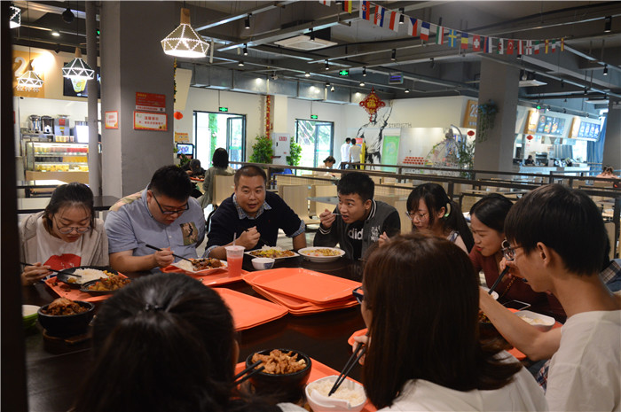 在毕业之后就业的规划上,有同学对考教师资格证、考公务员以及村官提出了自己的问题,想明白,对于同学们来说哪一种选择是更好、更适合自己的选择。对于这个问题,林毅老师有自己独到的见解,“注重兴趣,不要盲目跟风考证,对于含金量不高的证,不如多花时间提高自身能力,集中目标攻克自己有兴趣的,将来对自身、对社会有作用的方面。鼓励大家毕业后当村官,为地方服务,发挥自身所学,为地方做贡献。公务员录取概率较低,考试前应做好相关准备工作,尽快做好目标选择,如国考还是省考,选择何种性质的工作。不要过分执着于各类证书,各行有各行的好坏,行行出状元,行业不分贵贱,可多做尝试,找到真正适合自己的,只要做得好,都是为社会做贡献。”对于老师们客观耐心的解释和建议,同学们得到了自己想要的答案。会后所有参会师生一起在学校餐厅进行了共膳活动,席间老师与同学们相谈甚欢,其乐融融。