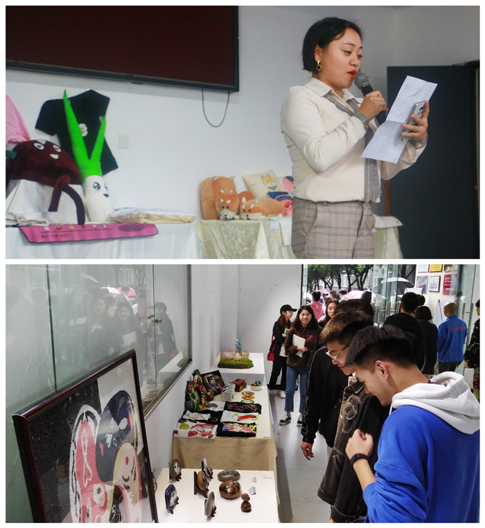 此次展出的作品多为手工制品,作品均来自于袁梦茹老师承担的《立体构成》与《动画周边产品设计》两门课程的作业,袁梦茹老师在其中精心挑选出百余件优秀作品进行展出。她表示学生的作品不仅是动漫内容的载体,也是动漫角色的情感的表达,体现了同学们的审美认知,更多地展现对文创产品的新颖表达。艺术来源于生活也需高于生活。