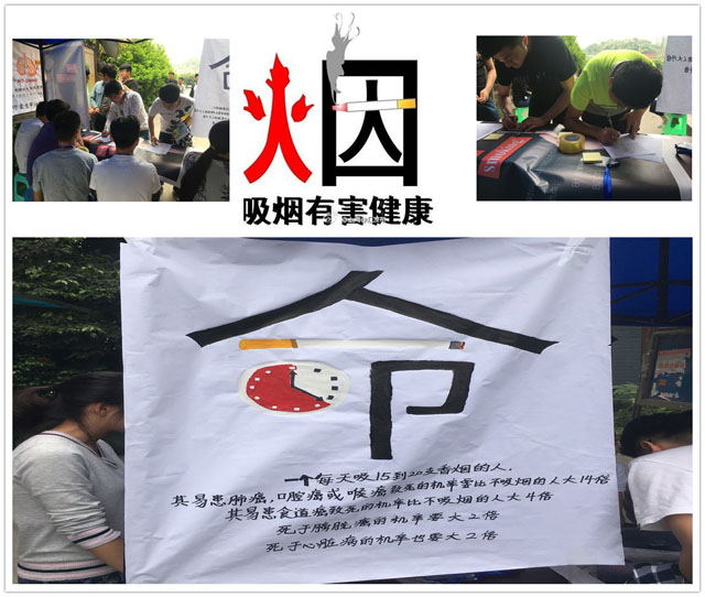 此次宣传一方面是让大家关注自身健康,了解吸烟对自身的损害,以及吸烟对他人的影响,尤其是二手烟对周围人群的影响和危害,同时也告知大家吸烟使用明火是有很大安全隐患;公共场所严禁吸烟也是我国大力倡导的,合川区积极响应的,作为在合高校学生我们应该大力宣传并且遵守,至少在校园内保证不吸烟。