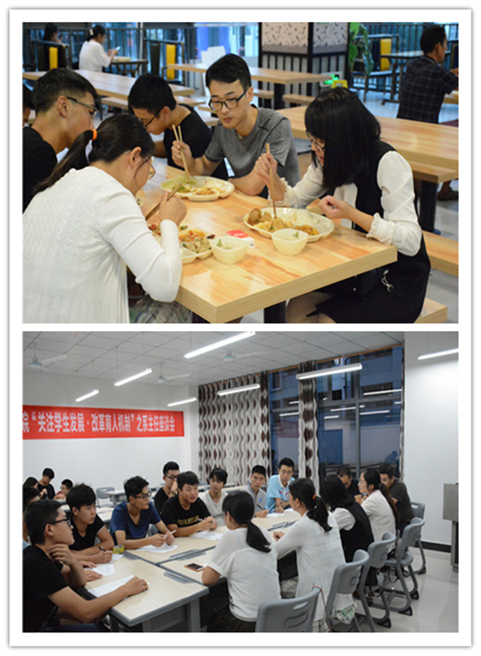 大学的时光美好却又短暂,如何能够在这段时间里充实自己,完善自己,成就自己,完成心中的梦想。9月20日下午六点,智能工程学院在竹逸B101举办了院长系列活动之“院长共膳日、院长座谈会”,此次活动,有幸邀请到智能工程学院副院长党晓圆副教授、教学团队带头人李洁老师、电气工程教研室主任杨佳义老师以及自动化教研室主任张姣老师为大一的新生们解决学习及生活中存在的各种问题,并及时收集问题和提供各方面的帮助。