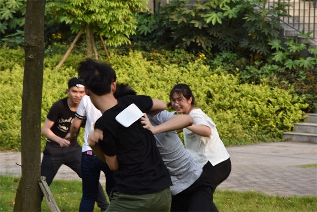 最后的“撕名牌”环节最是让人热血沸腾,充斥着头脑风暴和身体的激烈对抗。同学们在尽力寻找积分卡为本队积分的同时,既要保护自己的“名牌”不被撕掉,又要想尽办法撕掉对手,场面异常紧张与激烈。看组员之间的团结一致,看队与队之间的思想碰撞,正是展现我校大学生良好的精神风貌和体育精神。尽管是一场具有竞争性的活动,但同学们仍是赛出了风度,玩出了友谊,比出了精彩。