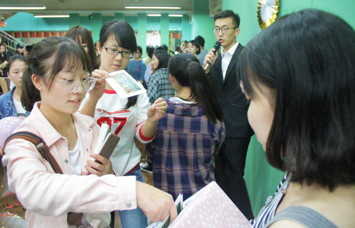 随后,花果书院综合办主任曹玉姣老师,学生发展导师郭嘉琦老师和张天赐老师为到场的花果书院学子们主持了温馨的入院仪式。曹玉姣老师致辞欢迎2018级新生正式加入花果书院大家庭,同时,她表示本次生日会不仅是为我们九月过生日的小伙伴们举办,更是为了迎接花果书院全体新生的到来,让我们一起在进入书院的第一个生日会上许下我们最美好的愿望。随后,花果书院学生自治委员的工作人员们将特意定制的明信片发到了全体同学手中,同学们在为他们精心设计的明信片上写下给未来自己的一封信,未来可期,希望每个萌新都拥有一个不可磨灭的珍贵大学回忆。