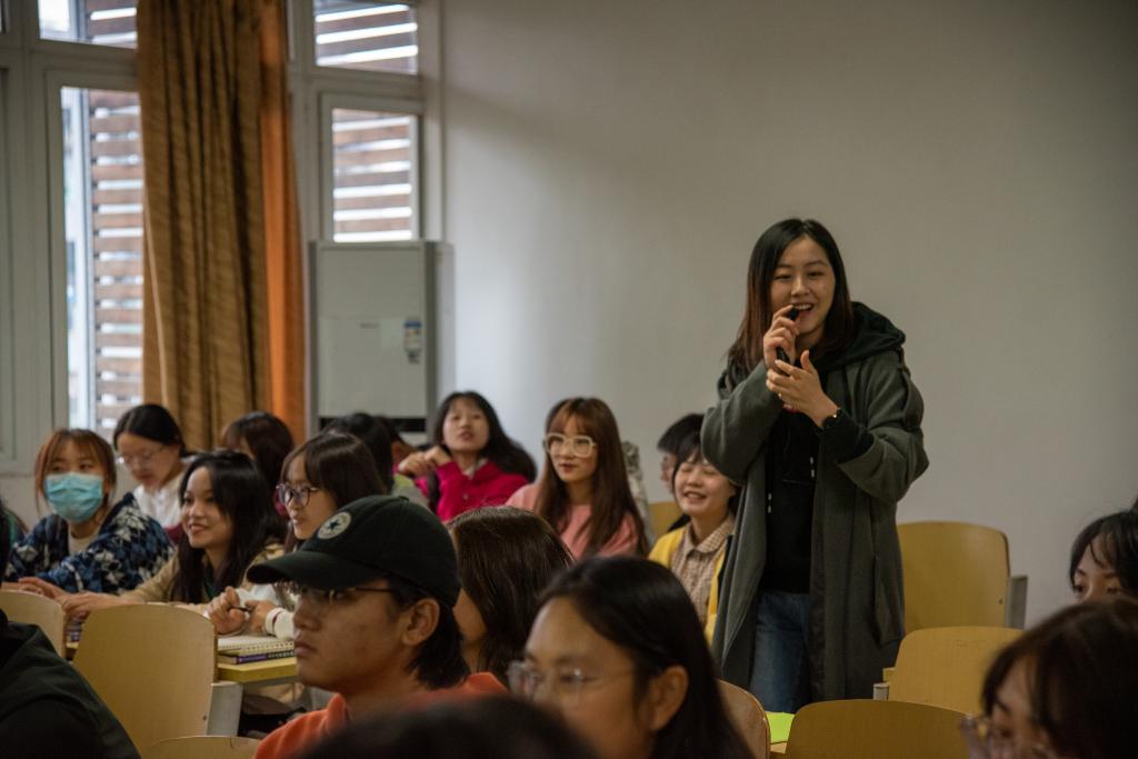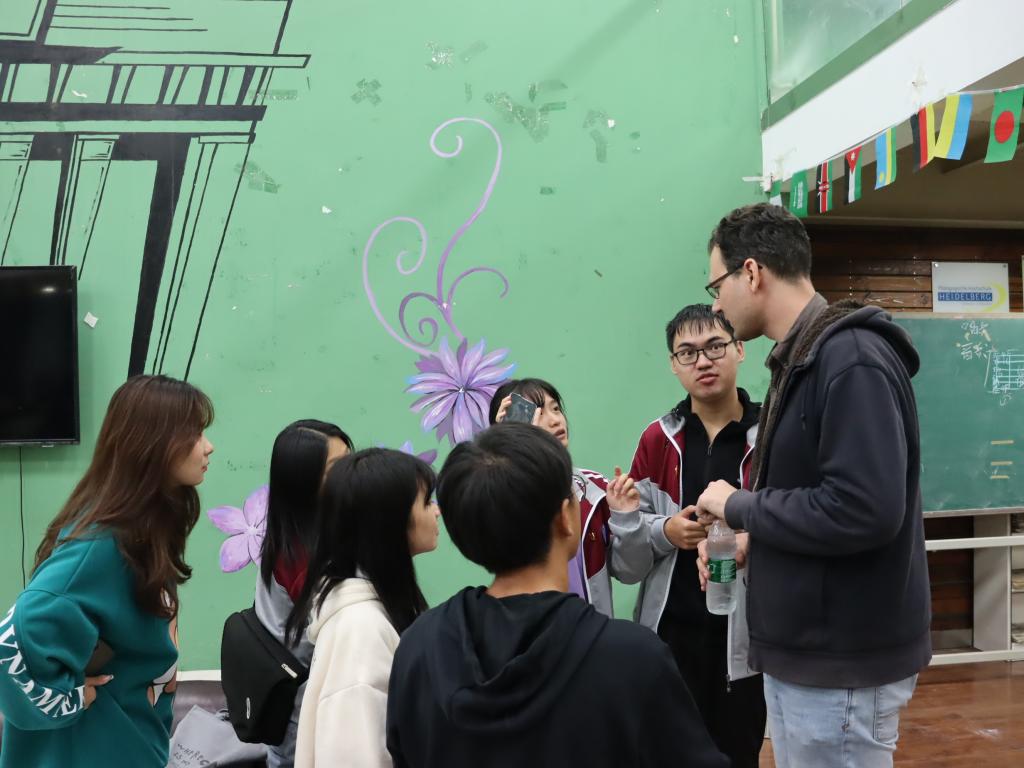 为此,课程特邀德国外教Elias以“德国人”的身份与学生们座谈交流,同学们的兴趣一点即燃,抛出了一堆问题,诸如您最喜欢吃中国的哪道菜?德国的方言差距有中国的这么大吗?德国和中国的大学制度有什么差别吗?问题涉及学习生活的多个方面,极大地丰富了同学们对中德差异的认知。