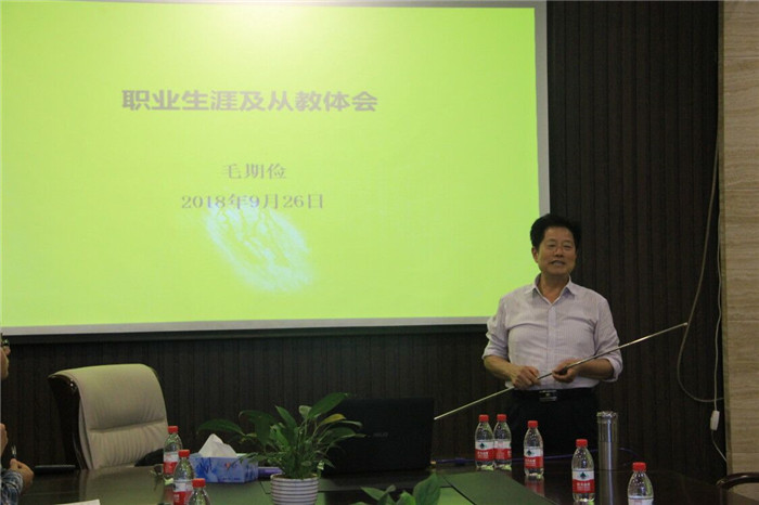 在毛教授的讲座结束后,在场老师仍旧对这次讲座回味无穷,并十分珍惜这次机会,积极地向毛教授提问请求解答。老师们的提问更多的是关心在进行自己的职业规划时,如何提高学生的学习兴趣?如何做才是真正的对学生负责?毛教授针对老师们的疑问作出回答:对于高校教师的职业生涯规划,首先要有明确的自我发展目标,目标是未来的现实。其次找准努力方向,就毛教授个人经历来说,他认为首先要上好一门课,必须得深刻理解教学内容,做好课堂教学设计,开始时进度不要太快,让大多数学生能听懂,只有听懂了才能引起兴趣。最后培养学生的自学能力,指导学生克服学习困难。
