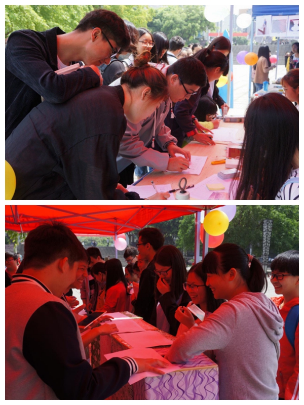 5月8日,“我爱我,大学生心理健康活动月”开幕式在原一二教广场举行,此次活动主题为“阳光洒满心灵,青春放飞梦想”,旨在呼吁大学生关注自己的心理健康,提高学生心理健康水平,增强心理保健意识。