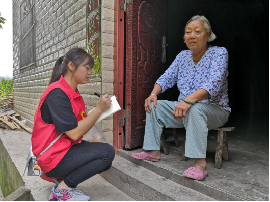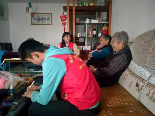 细小的桂花,随着雨水飘落。当新学期的开始静悄悄来临之时,通信与物联网工程学院的志愿者于2018年9月再次踏上暖心工程之路,水泥路与红色的背影互相辉映着。在秋季阴雨连绵之时,志愿者们进入花园村、紫荆园等地,望空巢老人,渴望帮助到更多的老人,关心他们的日常生活。