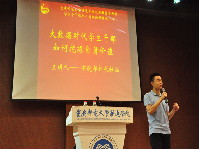 一切就绪,学员们正式迎来了本次的主讲嘉宾——杜涵老师,为学员们带来一场思想语言盛宴。杜涵老师以手机在生活中的重要性,以及时代与众不同的变化为学员们引出了本次授课的主题——大数据时代学生干部如何挖掘自身价值。