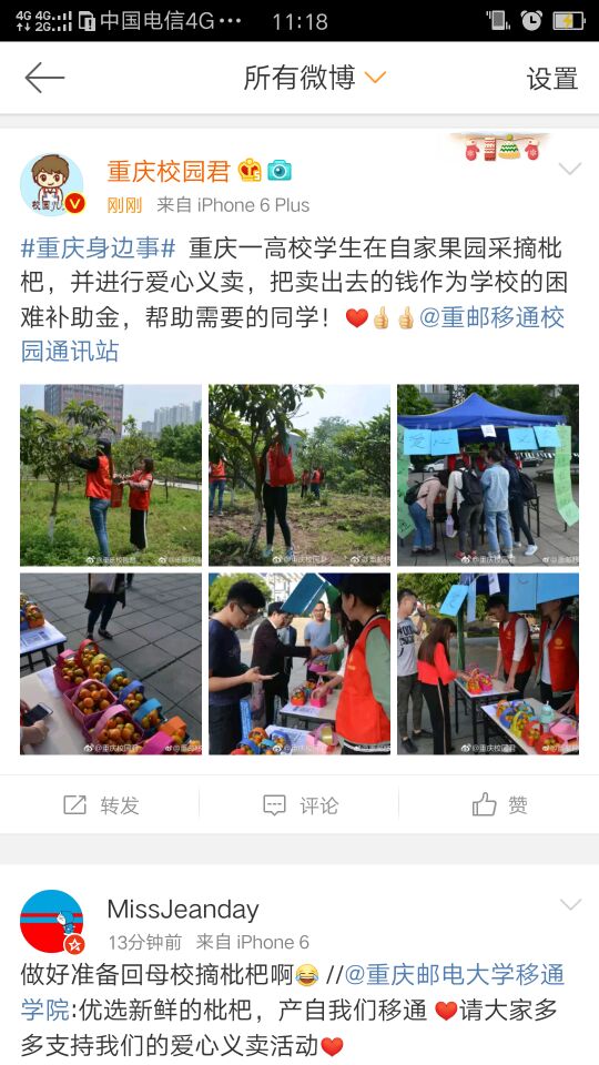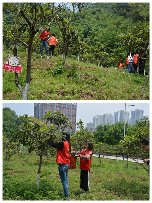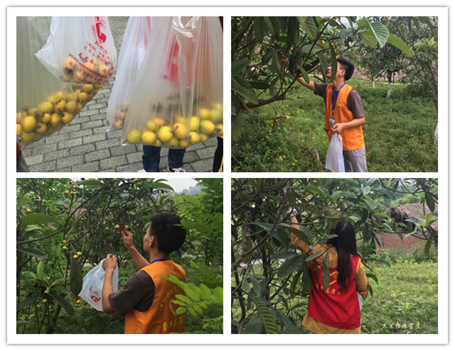 除了采摘以外,我们也将园子里树上被别人折断的残枝进行处理,不仅要享受枇杷带给我们的美味,也要让它以后更好的生长,同时我们也呼吁广大朋友们在采摘时注意保护果树。在一番忙碌之后,很快就到中午了,我们带着已经采摘好的果实在教学楼广场进行了义卖,会将筹得的善款捐给我们帮扶的对象。