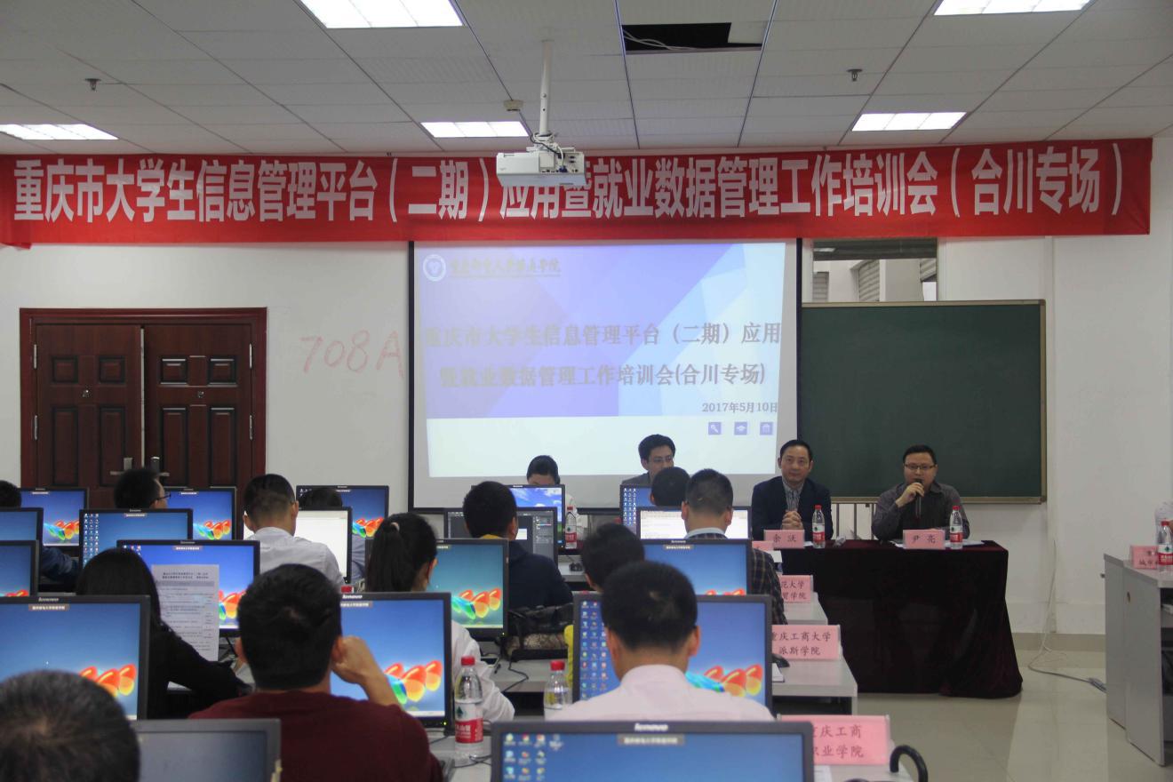 为推动重庆市大学生信息平台(二期)建设,确保平台系统软件顺利运行,同时也基于对我校就业创业工作开展情况的充分认可,5月10日,重庆市大学中专毕业生就业指导服务中心组织合川、永川片区的高校集中在我校开展了重庆市大学生信息管理平台(二期)应用暨就业数据管理工作培训会(合川专场)。