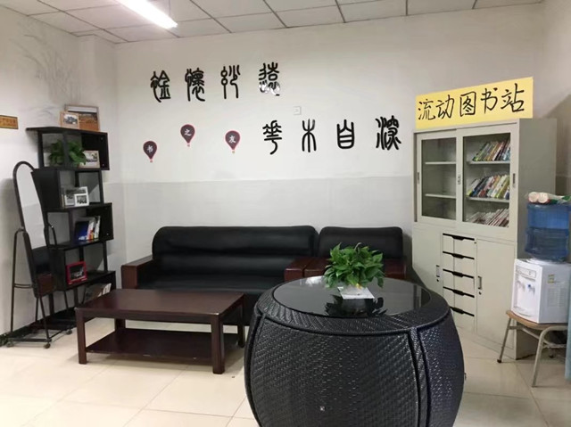 在日常维护环节,工作人员会定时或不定时对总站和分站进行分站维护和书籍整理,总站的管理人员主要是查看书籍有没有破损的情况,而分站则会着重对照那两张表查看书籍借阅情况。襟怀妙远:是说读书要有怀抱,读书能扩大眼界、境界,愈走愈高。花木自深:是说此处清雅,能增静气,心气平和,环境清幽。正是读书的好去处。但愿每一个进入这个流动图书站的小伙伴都能够感受到我们营造的舒适环境,从而爱上阅读,将阅读的魅力扩散到更远的地方。