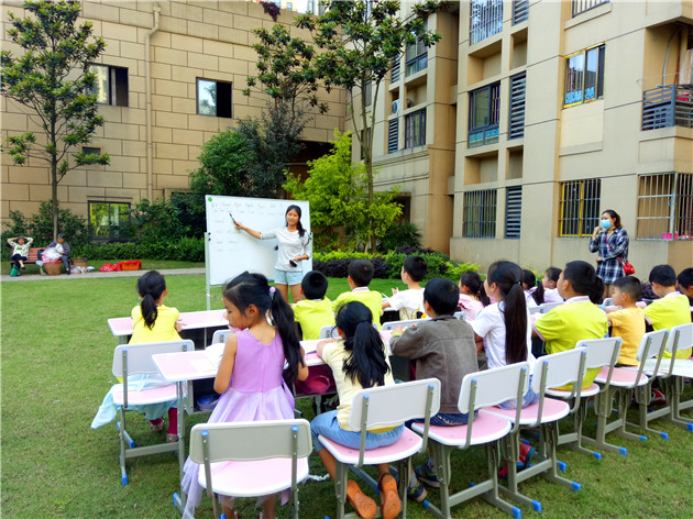 我们是一群健壮的鹿,在草原上张扬的奔跑,我们在努力追逐梦想,追逐未来。又到外语系志愿者与社区小朋友相约的时间,在这条学习的路上我们和小朋友们从未停止。今日,小老师们又出新招,将课堂搬出教室,带着孩子们与大自然来一次亲密接触。