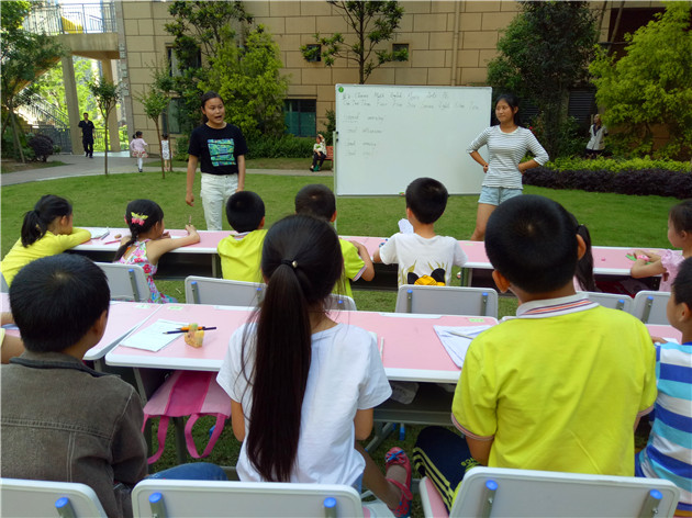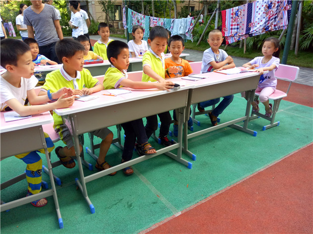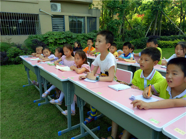 可爱的孩子们永远不会让老师们等待,离上课还有20分钟,但他们已经早早在教室外排队等候了,听老师说要在室外上课,都自告奋勇的要求搬凳子。一切准备就绪,只等老师下令。