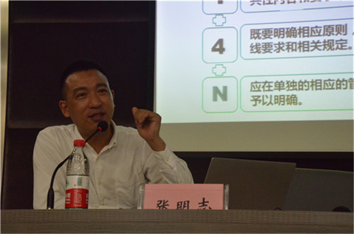 会上,张明志教授分别就新规定修订的工作辑要、新规定修订的主要内容、新规定修订的重点要求三大模块进行逐一阐释,利用典型的案例为老师们细致地剖析《普通高等学校学生管理规定》中的重点条款,让参加培训的老师对学生管理规定有更清晰的认知。张教授强调,当前学生管理工作正在由从严管理向科学管理转变,在管理工作中要保持行政权力和学生权利的平衡,要充分地保障学生对学校事务的知情权、参与权、表达权和监督权。
