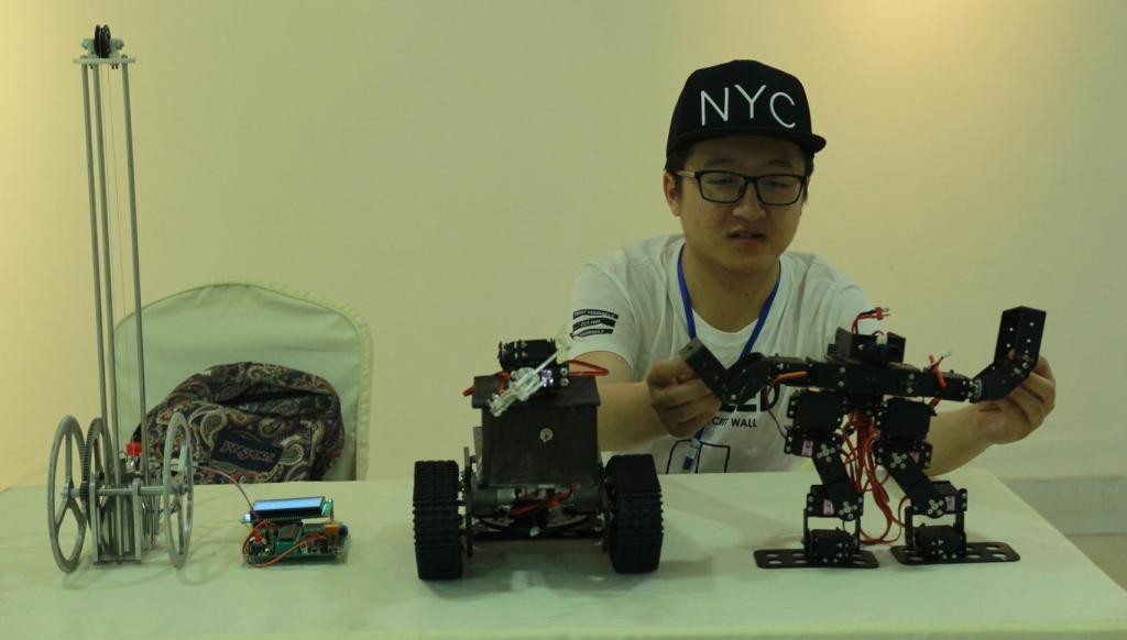 重庆邮电大学移通学院受邀也带去各类科技作品及古钓鱼城文化资料,其中一位现场的市民说到:“这是我第一次参加这种活动,第一次看到这么多新奇的科技作品,由此展现出的参赛人员的科技素质及文化修养都很高,我最喜欢的就是这个联动的科技作品,以前只能在网上看到这种奇妙的东西,没想到现在也能亲眼看到了,还可以自己接触到,很不错。”