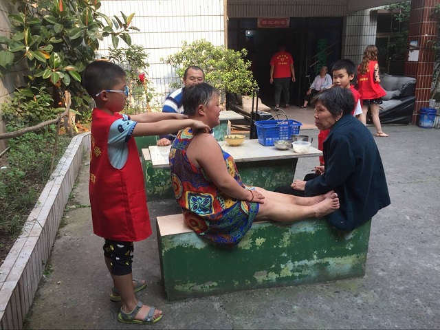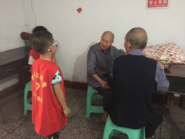 早早的,我们志愿者们一大群人带着小朋友们来到敬老院,跟老人们聊天,正好又赶上他们吃饭的时间,期间,小朋友们陪着老人们一起吃饭一起聊天,给老人们捶捶背什么的,可以看到老人脸上洋溢着慈爱的笑容,饭后,帮助老人们洗碗收拾,等等这些事做完之后,今天的主角们终于上场了。