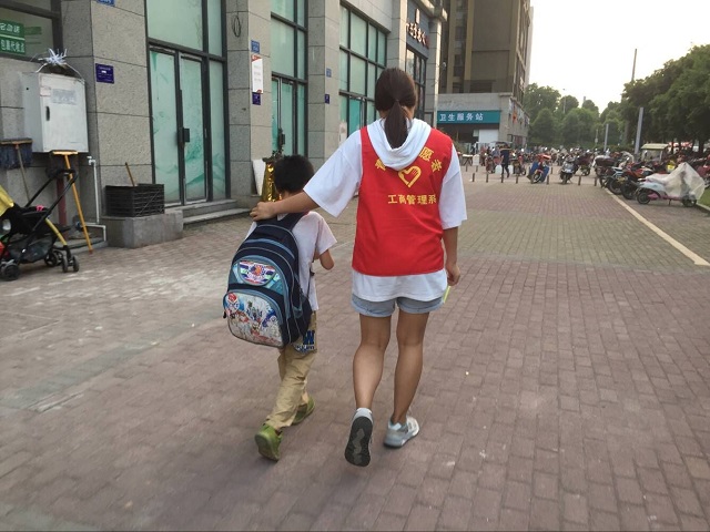 活动接近尾声,天也渐渐黑了下去,为了让孩子们能顺利回家,志愿者们将家住较远的孩子们送了回去,其他在就近的孩子家长都来接孩子回去了。