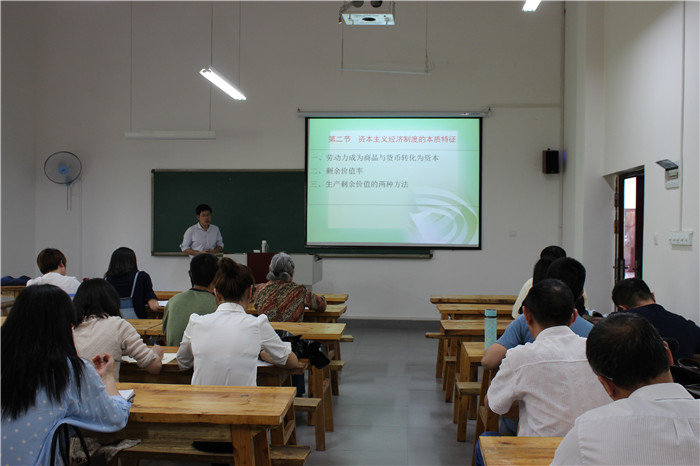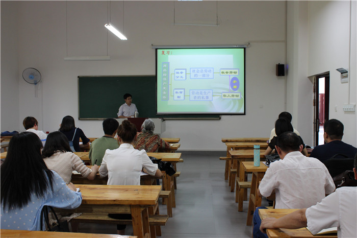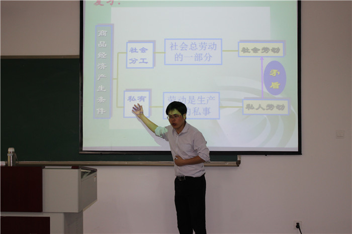 陈建老师用简洁精练的语言讲解了“资本主义经济制度的本质”这一节课的内容,课堂进度把握张弛有度,既凸显了学生学习的主体地位,又彰显了教师良好的教学功底及深厚的理论功底。整个一节课,陈老师的问题“环环相套,丝丝入扣”,教学设计合理流畅,始终秉承“把问题抛给学生,让学生自己思索,再由教师解疑答惑”的理念,准确的把握了设疑的方向从而调动了学生学习的兴趣。同时,陈老师巧妙利用板书和教学课件,用精简易懂的语言将晦涩难懂的马克思主义政治经济学的内容讲的活灵活现,课堂讲解层次清晰,重难点突出,深入浅出地对授课内容进行了详细阐释。