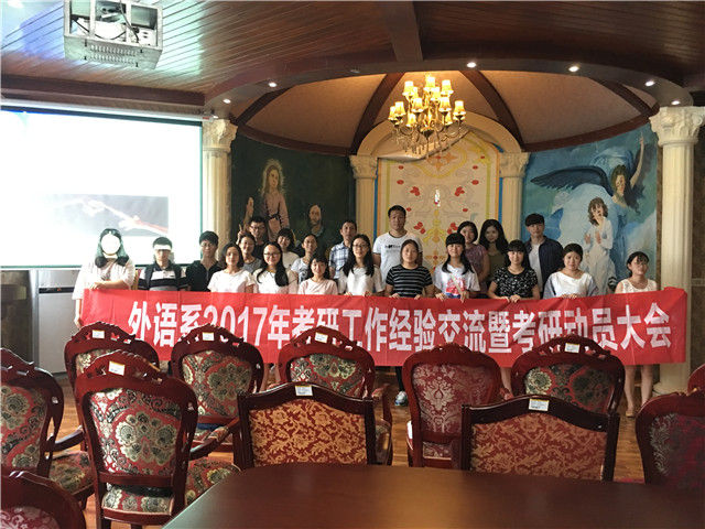 又是一年离别季,每当这时我们就会面临一个重要的选择:是选择投身社会洪流经历锻造,还是继续深造让自己再镀上“硕士”这层金?2017年的考研工作已经紧张展开,为了让同学们更好地了解考研的相关事宜,6月1日中午12:30外语系在英美村进行了2017年的考研动员大会。外语系主任吴世银老师、专业英语教研室主任罗琳老师、公共英语教研主任张旭宁老师、外语系齐菲菲、李静老师以及外语系辅导员纪治阳老师出席本次会议,同时,本次动员大会也有幸请到2017届考上研究生的学长学姐前来分享成功经验。
