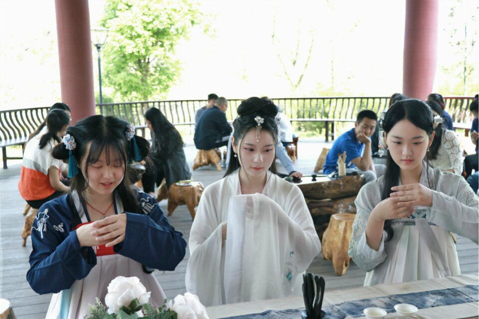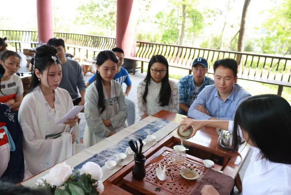 煮沸一壶水,触摸岁月的痕迹,同一泡成年老茶对话、交谈,就是将那段美好的记忆,一杯一盏的,慢慢的,倾注到每一个人的心间,这或许就是茶文化带给我们的最深感受。为弘扬传统文化将“茶”这一蕴含丰富传统文化底蕴的事物呈现到人们眼前,茶学社邀请到华韵汉服协会、国学社、民俗协会,于禅修书院开展饮茶活动,通过社员烹茶、洗茶、饮茶等环节,让更多的大学生了解茶,了解茶道,热爱茶文化,进一步培养当代大学生对传统文化的传承与保护意识。