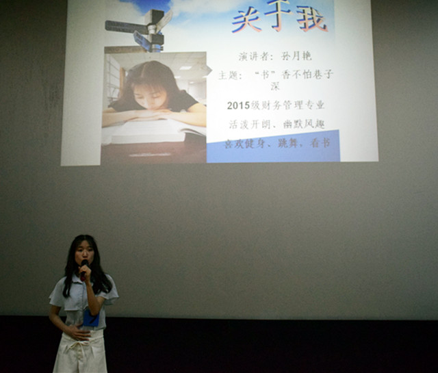 这次比赛分为三轮,首先每个选手进行主题演讲——“书香不怕巷子深”。上台的选手们展示自己的观点,台下的选手们略为紧张的准备。7号选手颜伟同学,沉着大方的气质,洪亮的声音展示出他的自信,打动人的激情演讲的确为他的比赛加分不少,“书香不是闻出来的,而是读出来的”着是他对于这次主题的理解。