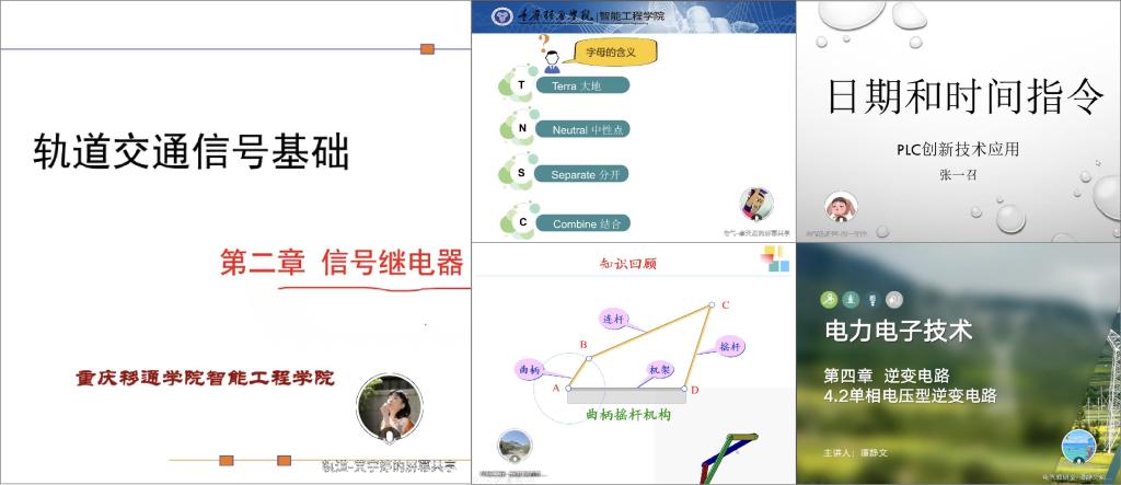 此次公开课由今年上半年新引进的9名教师主讲。首先进行授课的是轨道教研室的黄宇婷老师,她从信号继电器的结构和原理介绍了继电器在铁路信号系统中的应用,原理讲解细致入微,为大家带来了一节生动的《信号继电器》课程。廖天应老师主讲的内容是《低压配电系统接地的形式》,他从TN字母含义出发结合工程实践项目,讲解了TN系统三种类型的含义及系统类型,形象生动。《PLC创新技术应用》课程教师张一召老师用日常时间类比PLC中的日期和时间指令,同时结合TIA博途软件实操,由浅入深进行知识讲解,最后引入中国天宫空间站中文操作系统激励青年学子树立科学梦想和自立自强的科技自信,很好地融合了课程思政。王国栋老师结合动画讲解了平面连杆机构的急回特性,从实践角度讲解了急回特性的工程应用,为大家带来了一节有趣的《汽车机械基础》课程。《电力电子技术》课程教师谭静文老师首先带领大家回顾了逆变电路的概念,随后讲解了单相电压型逆变电路,她鼓励学生带着问题去思考,课件详实细致,具体生动。