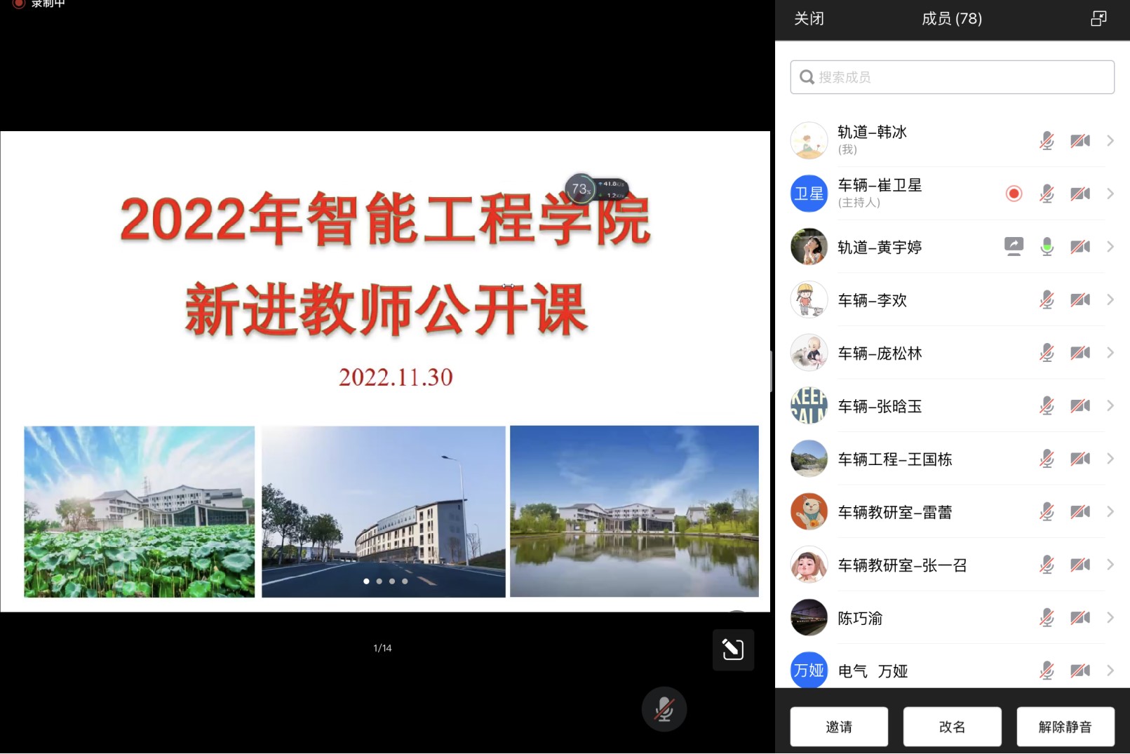 为进一步加强教师队伍建设,全面提高教育教学质量,携手共建良好教学交流环境,激发新进教师教学积极性,提高学院新教师教学水平。11月30日下午,智能工程学院在线上开展了新进教师公开课活动,活动由李洁副院长主持,学院全体教师参加。