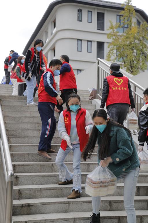 中午11时16分,老师的私家车变成了送餐车,全校所有的志愿者老师开始为同学们免费发放午餐。一日三餐怕久了饭菜会凉,老师们自主搭建“传饭带”,分楼层有序地通知学生一寝一人领取本宿舍盒饭,晚餐下午17时30分,这样的工作依然井井有序地重复着。18时30分,我们开始了全员核酸检测,有美丽的大白医生认真仔细,也有很多老师积极地成为了她们的助手在忙前忙后。所有老师都是忙完一整天的工作很晚才去吃饭,一份盒饭温暖着每一个学生,同样温暖着每一位老师!