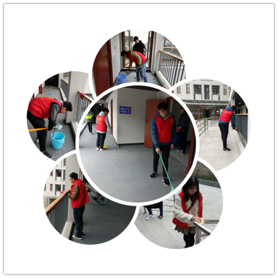 紧接着,所有小组来到了寝室楼下,开始各项工作。志愿者们用扫把清扫着每一块地板,在挥动扫把的时候深深感受到了平时清洁阿姨们的辛苦,是他们用汗水与辛劳挥舞着手中笨拙的扫帚,给校园一个整洁的容貌,默默无闻,无私奉献。想到这里,志愿者们更加的用力挥动自己手中的扫帚与抹布,誓将每一块地板,每一根栏杆擦拭干净。年轻力壮的小伙子在同学的保护下,爬上栏杆,去清理那些平时阿姨们不能清理的地方,一挥一拖,在每个地方都留下了志愿者的足迹。