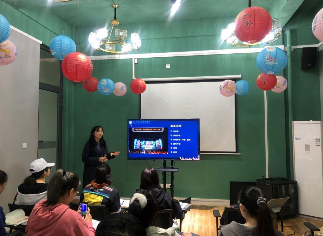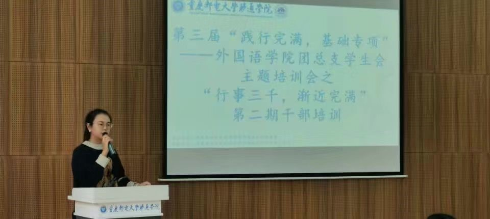 2020年11月18日中午12点10分,第三届“践行完满,基础专项”——外国语学院团总支学生会主题培训会之“行事三千,渐进完满”第二期干部培训会正式开展,此次活动特邀校学生会主席陈星月分享完满心得。陈星月学姐分享了她与完满教育的故事,并从自己的工作经历中总结出一些工作经验,例如如何学会情绪管理,如何进行自我调解等。陈星月学姐的分享使大家受益匪浅,让各位干部们对完满教育有了全新的理解与认识,深刻体会到完满教育的影响力。