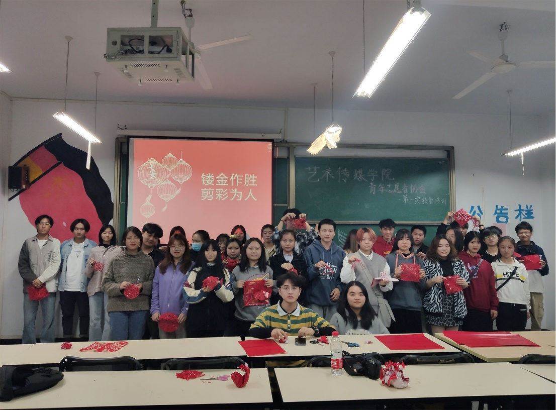 2020年11月19日下午6点,艺术传媒学院青年志愿者协会在艺术楼208教室举办了第一次干事技能培训——剪纸培训。主讲人通过课程软件对两类传统的窗花剪纸进行了详细的步骤讲解,并针对干事们提出的疑问进行解答。