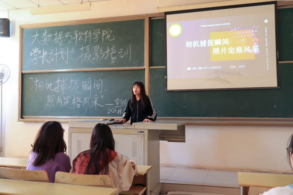 2020年11月11日16点大数据与软件学院团总支宣传调研部于第三实验楼针对2020级组宣委员以及团总支学生会干部干事开展了以“相机捕捉瞬间,照片定格风采”为主题的摄影培训会。本次会议主体分为四大部分:相机基本按键使用、相机基本参数设置、活动照片拍摄重点以及后期处理注意事项。