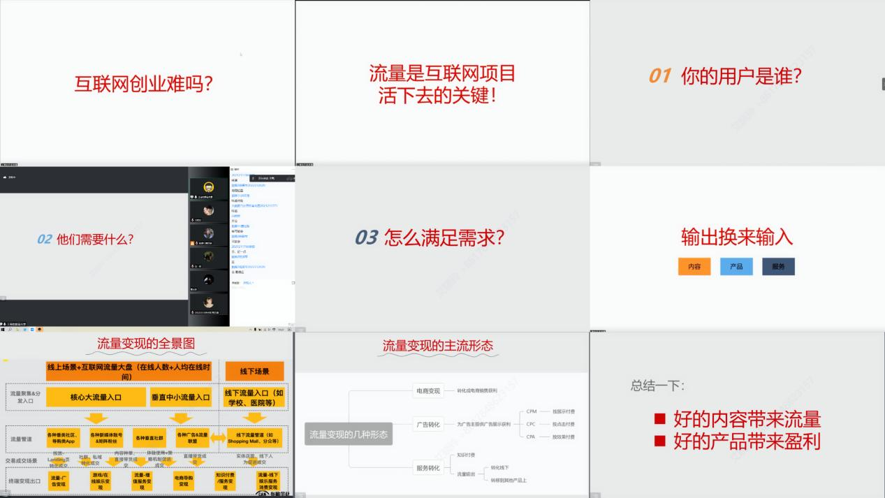 时光如梭,时代不断发展,科技不断进步,互联网创业路不简单,我们希冀同学们能够在本次分享中学习到重要点以及运用到自己身上,成功将流量变现。