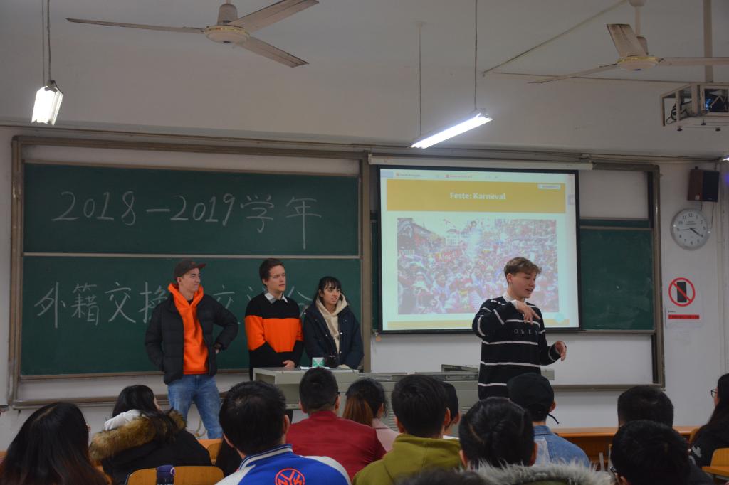 随着全球化发展,培养大学生全球意识已成为社会发展的需要,我校也致力于鼓励大学生走出去、开拓国际视野,丰富人生阅历,服务社会发展。12月17日、18日下午4点,国际交流与合作处在中德书屋和第一教学楼1203教室举行了2018-2019学年外籍交换生交流分享会,邀请了我校的交换生为同学们进行国外生活学习等方面的分享。
