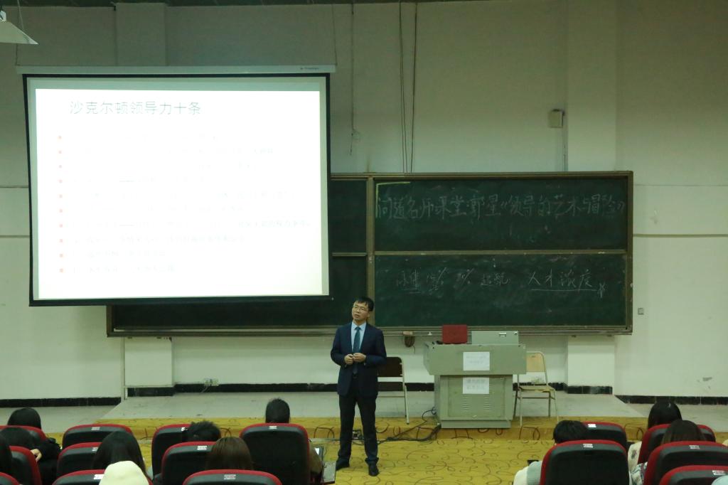 伴随着热烈的掌声,讲座也到达尾声,一个个精彩、生动的案例分析,让同学们对领导管理有了新的认识。领导力是一种能将想象力转变为现实的能力。在未来,同学们不断学习,敢想敢做,才可以激发出更好的自己,有目标的去成为一个优秀的领导者。