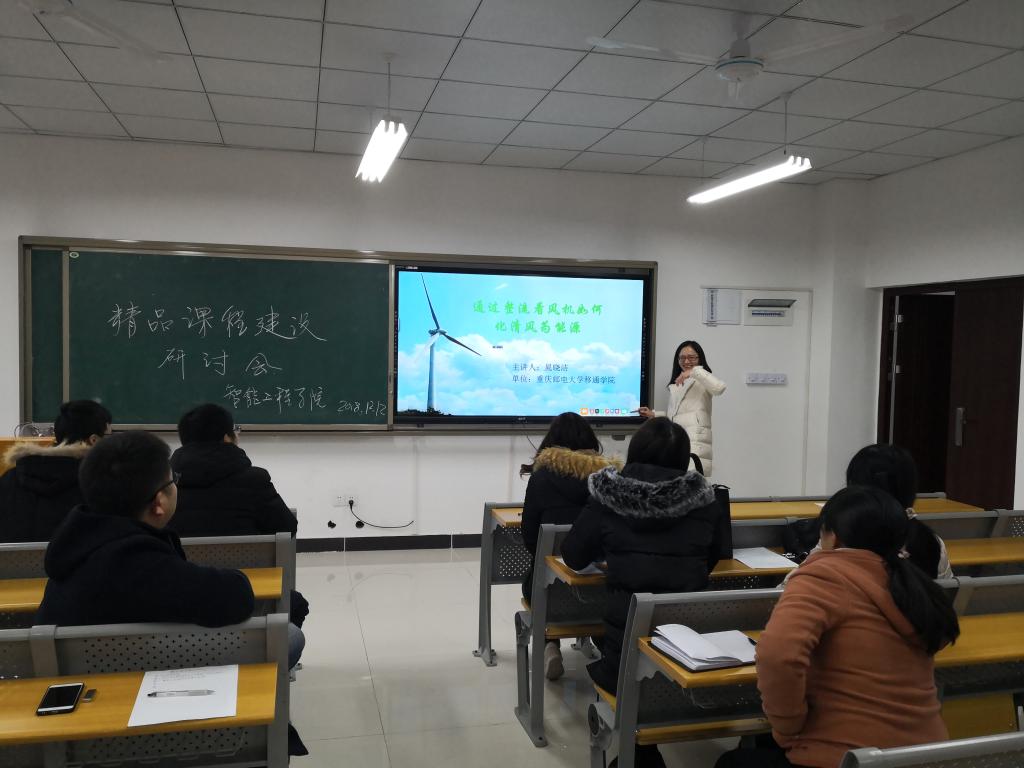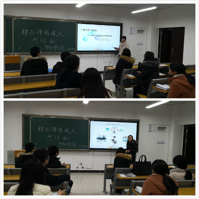 12月5日下午和12月12日下午,《电力智能控制基础》教学团队联合电气工程教研室连续两周召开精品课程建设总结与推进研讨会,教学团队负责人李洁老师主持会议,教学团队全体成员和电气工程教研室全体老师参加了这两次会议。李洁老师首先对《电力智能控制基础》教学团队对前期工作进行了总结,为更好推进《电力电子技术》在线课程建设工作,教学团队需不松劲、不停步、重整行装再出发,计划在本学期内再完成5个高质量教学视频制作。