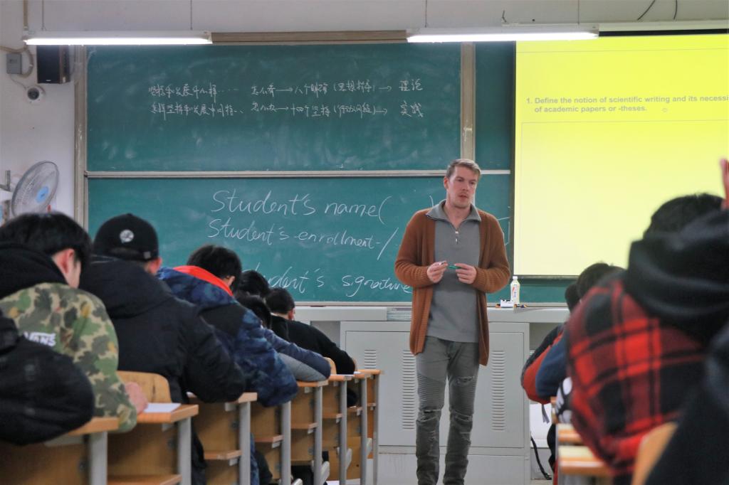 面对全英文的专业课程,大多数同学一开始都是既陌生又恐惧,外教Timo Schroder在用形象生动的语言进行表述的同时,往往举一些实例,方便同学们理解。幽默的言辞,缜密的逻辑,渊博的学识使同学们很快将对外教专业课的恐惧与排斥抛到九霄云外。有不理解的问题,同学们也会在课下积极向外教请教,外教Timo Schroder都会耐心讲解,引导同学们挖掘很多的知识。