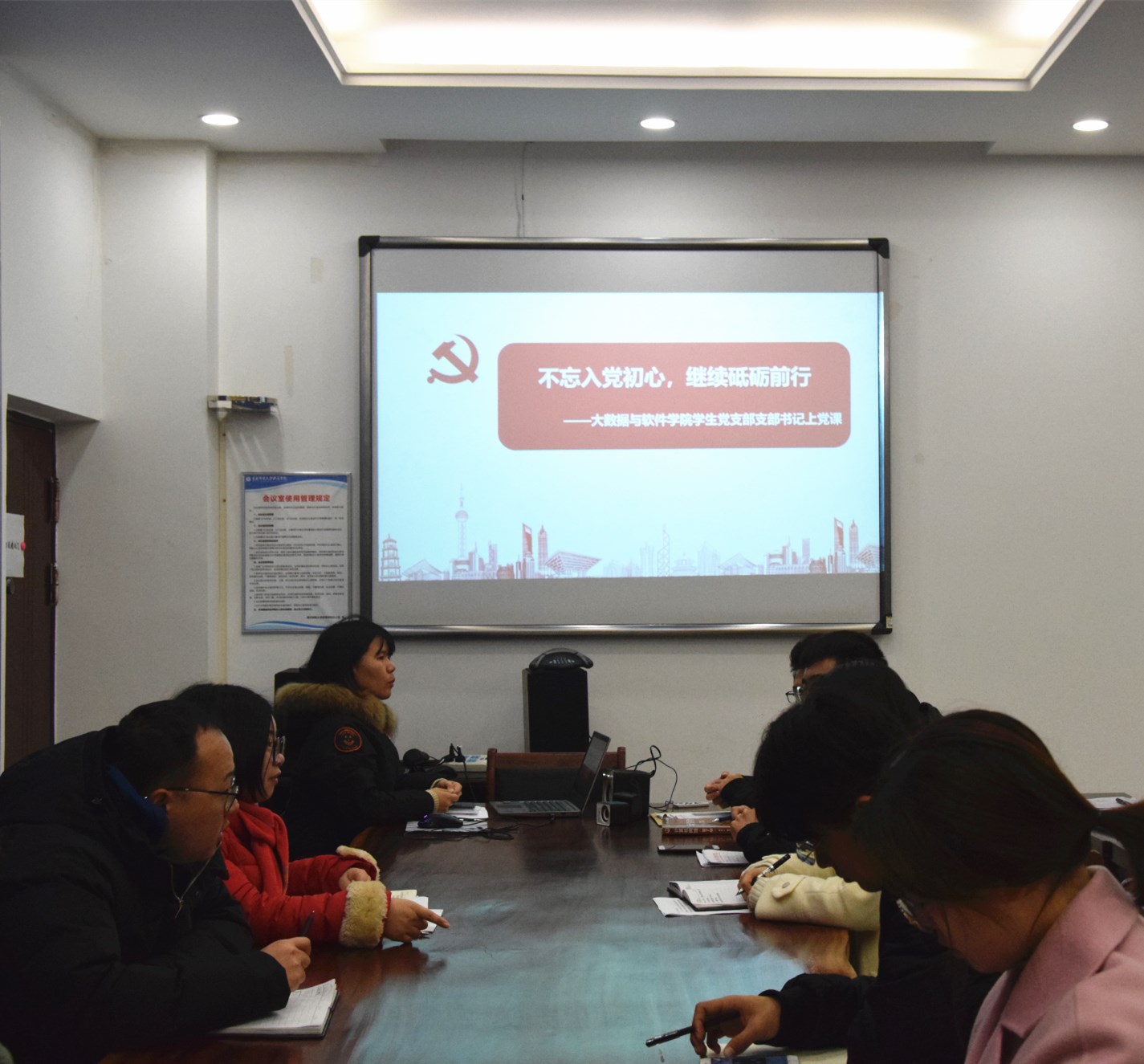 为更好的贯彻党的“两学一做”学习教育以及号召各位党员同志牢记入党初心,12月21日上午10:00大数据与软件学院学生党支部在行政楼417举行了主题为“不忘入党初心,继续砥砺前行”的党课,本次党课的主讲人是大数据与软件学院的学生党支部书记毛敏。