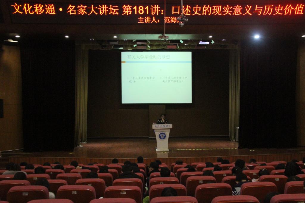 12月25日晚七点,范海涛老师与同学们相聚在下里巴人剧场,这次的讲座除了让大家了解到口述史的意义外,还将让我们感受到一场绚丽人生的突围。