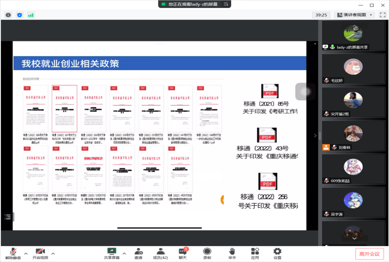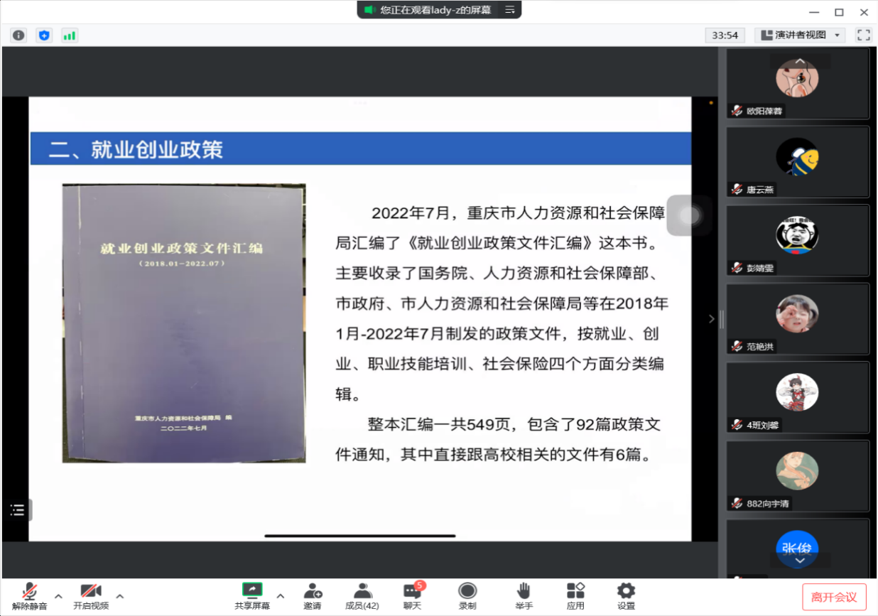 本次活动主讲老师是重庆移通学院就业创业导师、就业就创办公室主任、大数据与计算机科学学院辅导员周义巧老师。