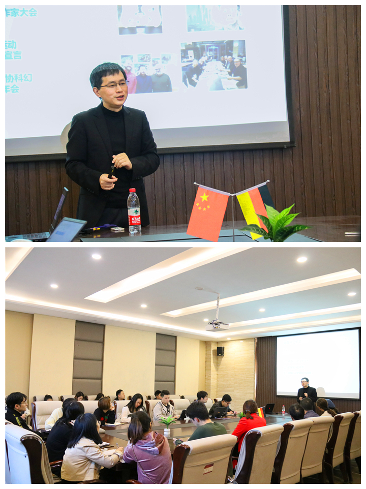 为进一步贯彻落实学校特色教育理念,结合学院国际化发展需要,开拓学院教师国际视野。11月18日16:00,中德应用技术学院特邀请钓鱼城科幻中心主任张凡于中德会议室为学院教师开展“中国科幻的国际化战略”专题讲座,讲座由侯宇晶副院长主持,尹浩亮院长、武强义副院长及全体教师参加此次活动。