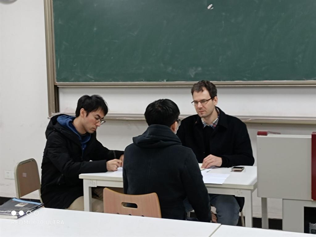 在模拟面试环节中,主考官由德籍外教Elias担任,中方德语教师担任助理。Elias对每位同学的表现做了精辟细致的记录和点评。他称赞了同学们的表现,同时也对诸多不足之处提出了相应的建议。不断追求中外合作办学质量的提升,是学院上下同仁的共同使命。我们有理由相信,2018级的中德学子们定会再接再厉,圆梦德意志,圆梦北黑森!