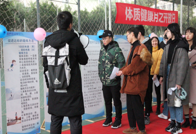 12月是我校“体质健康月”将集中展开“理念解读、开放体验、挑战活动”等内容,在体质测试中心指导下,学生体育联合会于12月20日至25日,在C区风雨球场面向各院系体协(部)、班级体育委员,举办了“体质测试开放日”活动。本次活动设“知识学习区、专项测试区、综合体验区”共10个项目,累计1755人次参与其中。在活动中,同学们加深了对学体测项目和标准的认识,学习了常见的体育健身和锻炼方法,通过现场测试增进对自身体质健康状况的了解。