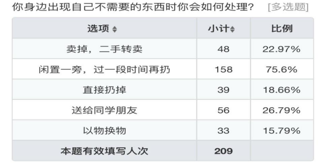如今,随着人们的生活水平的提高,商品经济发展,物品的更新换代越来越快,有些还有实用性却闲置的物品也越来越多。在开展活动前,支部成员对校园内以物换物的相关情况进行了调研,结果显示,大部分的同学都采用了“过段时间扔掉”的方式来处理闲置物品,这是对物质的一种浪费。