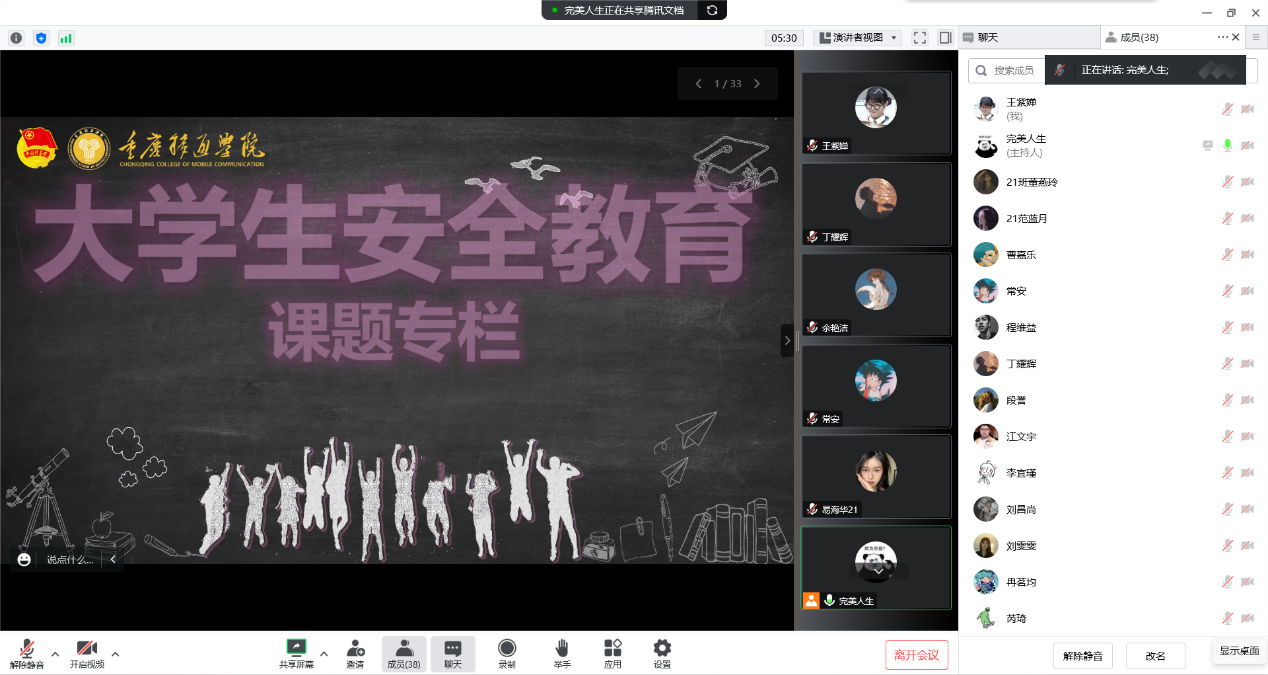 本次云端安全教育培训会的内容非常丰富、扎实,围绕大学生在校内、职场等不同的环境中,从防盗、消防安全、国家安全、抢劫、诈骗、滋扰、网络安全不同方向,展开系列的培训,为使得本次的培训会具有实用性,老师从案例分类、事件发生采取的有效举措方法,融合自身以及身边真实案例,有趣地讲解,给同学们带来了两个多小时却终身受益的第二课堂重要知识。
