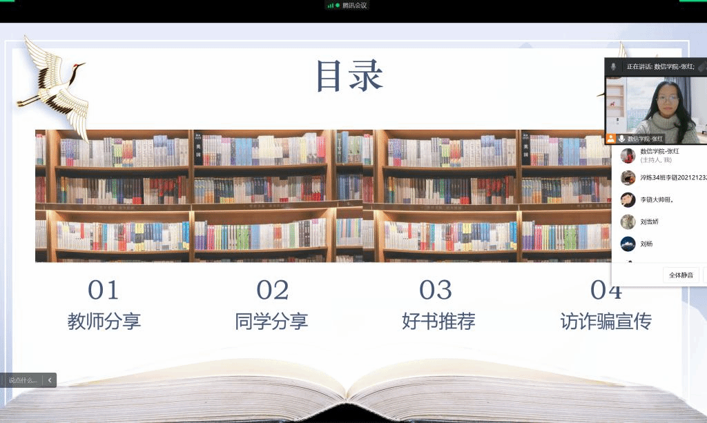 本次阅读活动,以教师领读+同学分享的方式进行,首先,张老师介绍了本次阅读会的初衷及基本流程:1、教师分享;2、同学分享;3、好书推荐;4、自由交流及防诈骗宣传。张老师提醒同学们,疫情下,虽然脚步出行略显被动,但是思想却是可以一直在路上。
