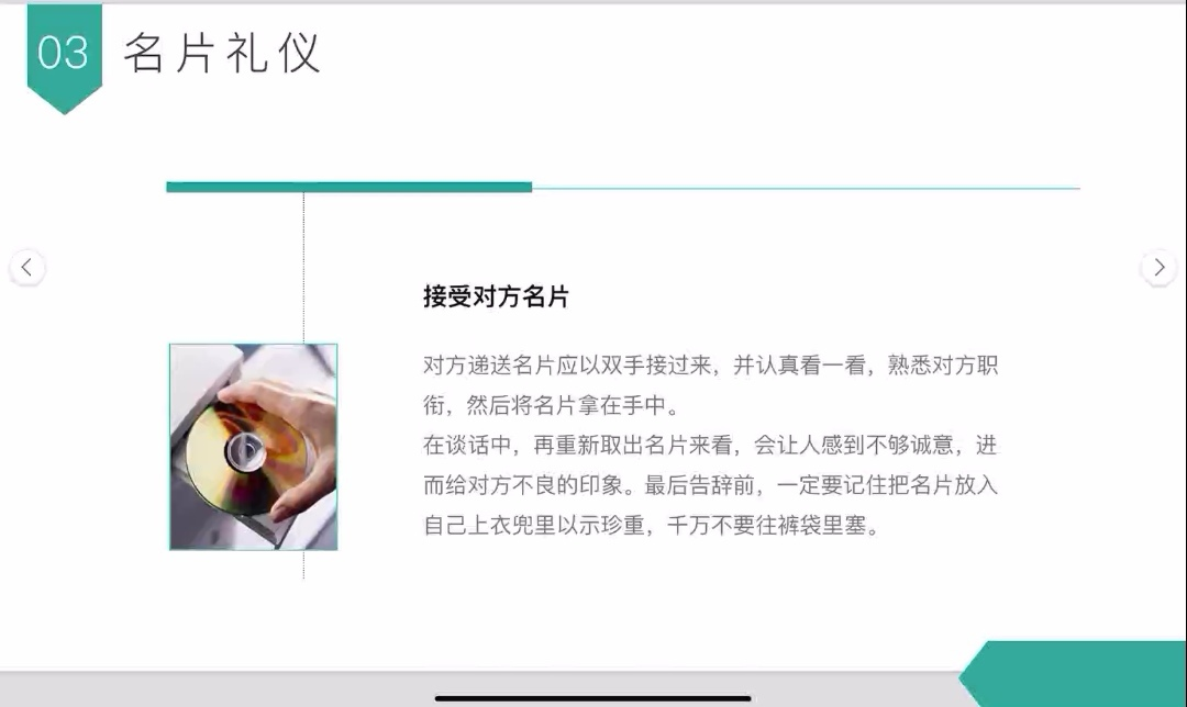 随后,吴丽玉老师又向同学们详细介绍了求职仪态的六个方面——礼仪从何为仪态、仪态表现、态度管理、仪态的功能、身体姿势以、名片礼仪。为了让同学们在未来面试中保持正确的仪态,为大家分享了仪态表现里眼神和微笑的技巧,从方方面面向大家讲解了仪态的规范姿势和动作,面面俱到,认真细致。